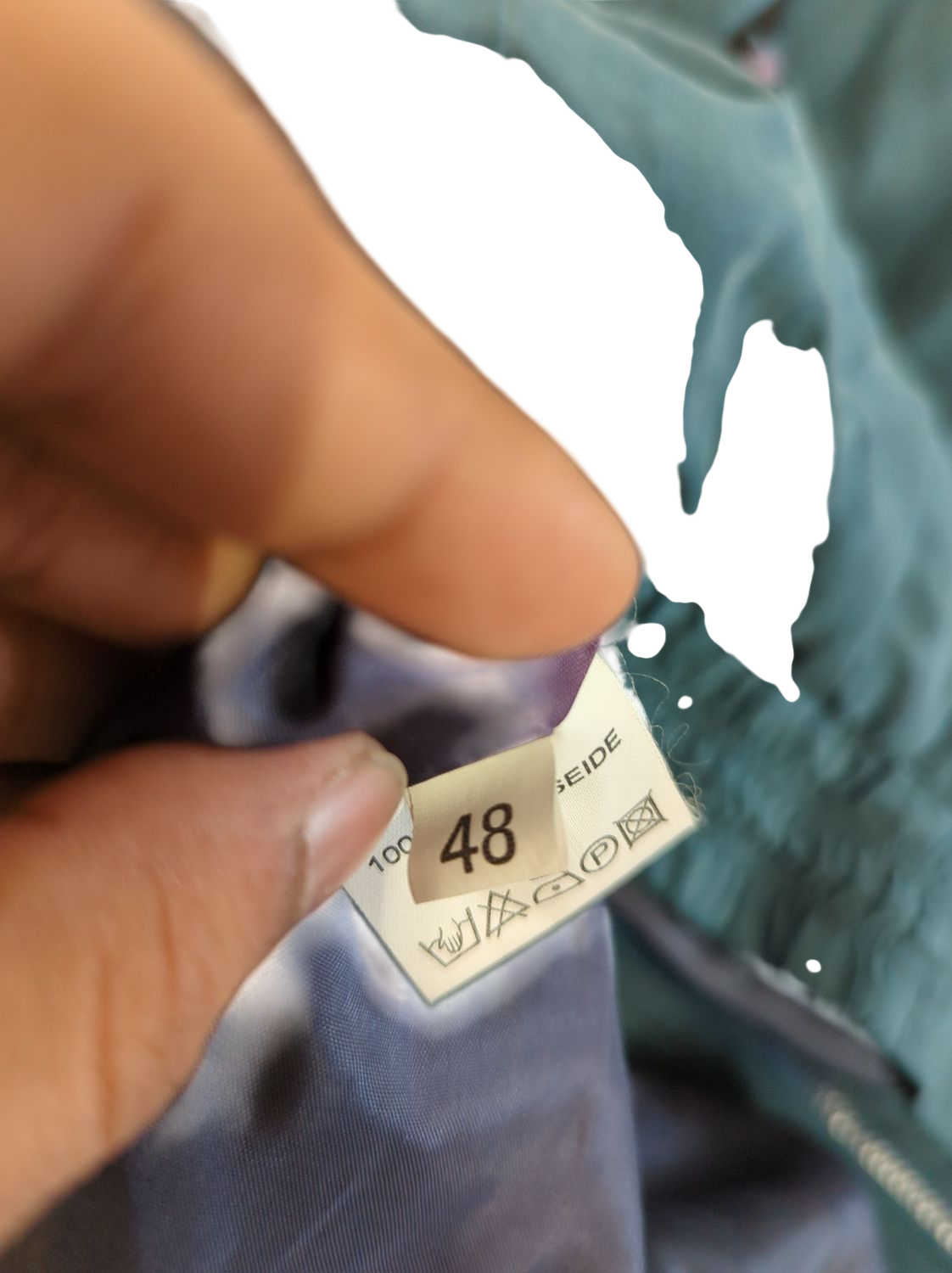 This Commander navy blue bomber jacket features distinctive geometric diamond embroidery on the front. The jacket has a classic bomber style with elasticated cuffs and waistband. It's a size 48 and has button closures. The jacket is in used condition but still presentable. The fabric appears to be cotton with a navy blue/teal coloration. The Commander logo is embroidered on the interior. Perfect for casual everyday wear with a unique embroidered pattern that adds character.
