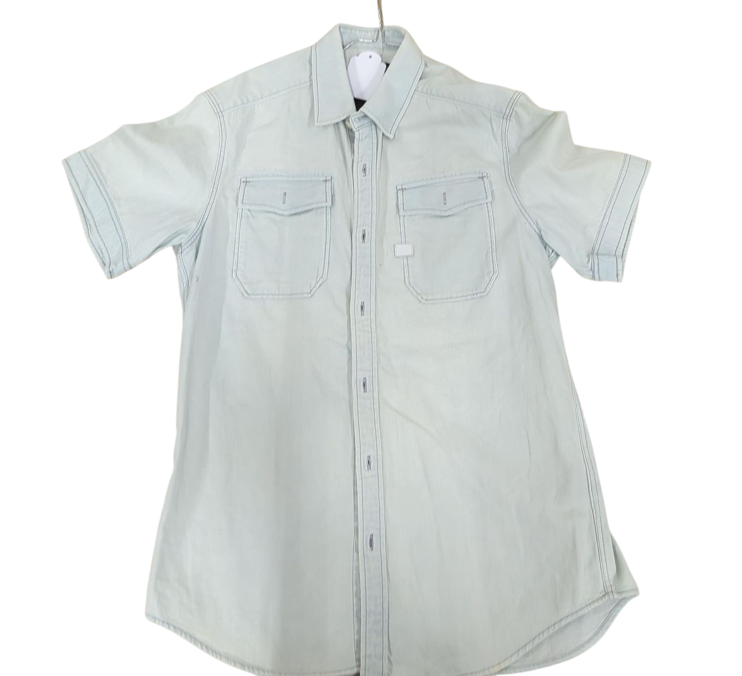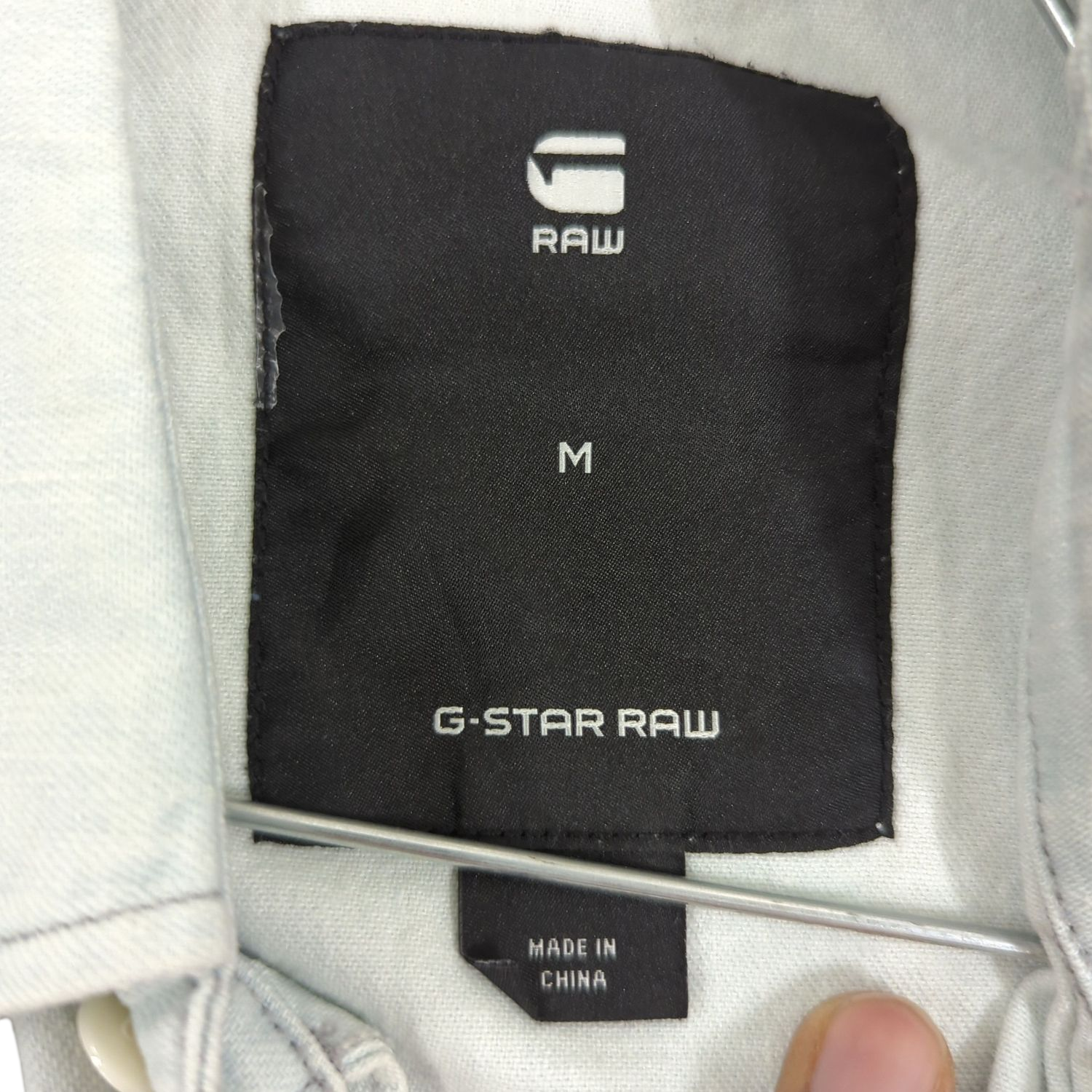 This pre-owned G-Star RAW denim jacket comes in a light blue wash and size Medium. The jacket features a button-up front closure with multiple pockets and classic denim styling. Made in China, this versatile piece can be paired with various outfits for a casual, everyday look. The jacket shows some signs of previous wear but remains in good condition, ready for its next owner.