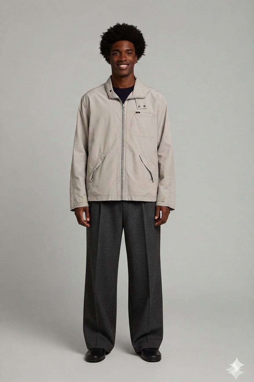 A classic Lee windbreaker jacket in beige. This lightweight jacket features a full front zipper closure with multiple pockets, including two side zip pockets. The jacket is size XL and has the Lee brand tag visible on both the inside and on a pocket. It's made of a cotton material with a clean, minimalist design that's perfect for casual everyday wear. The jacket shows some signs of use but remains in wearable condition. A versatile piece that can be layered over different outfits.