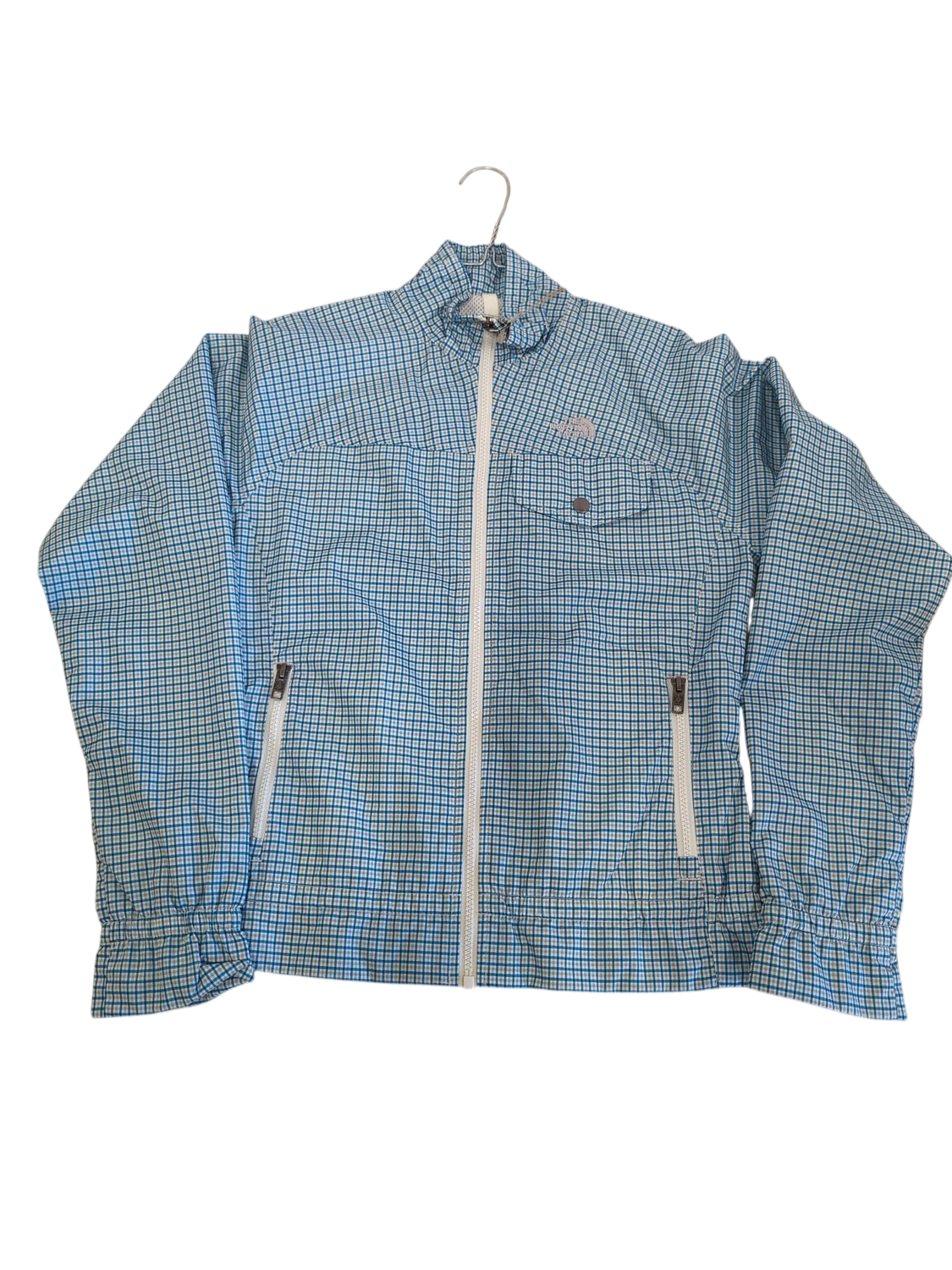 The North Face Blue Checkered Windbreaker Jacket - Size S